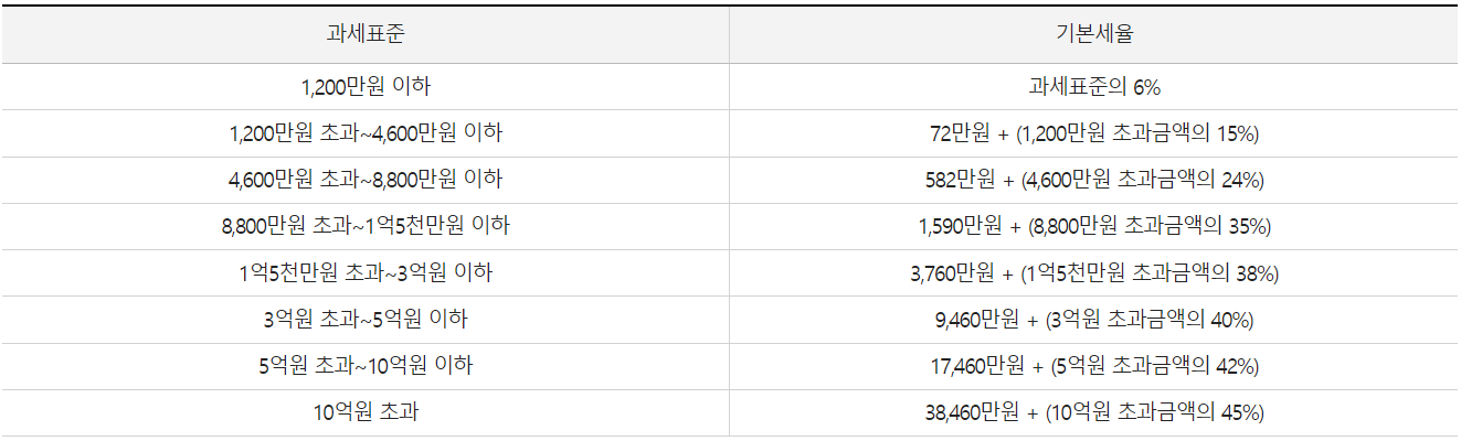 그리고 이 과세표준을 보고 아래 세율 표를 기반으로 한 세금을 떼어가게 된다.